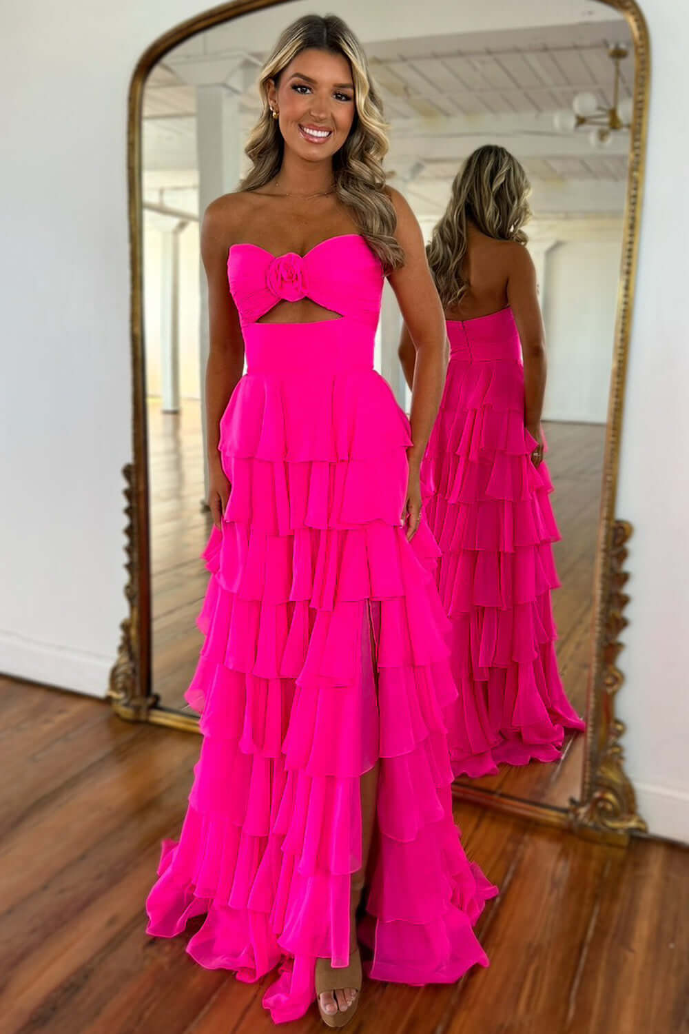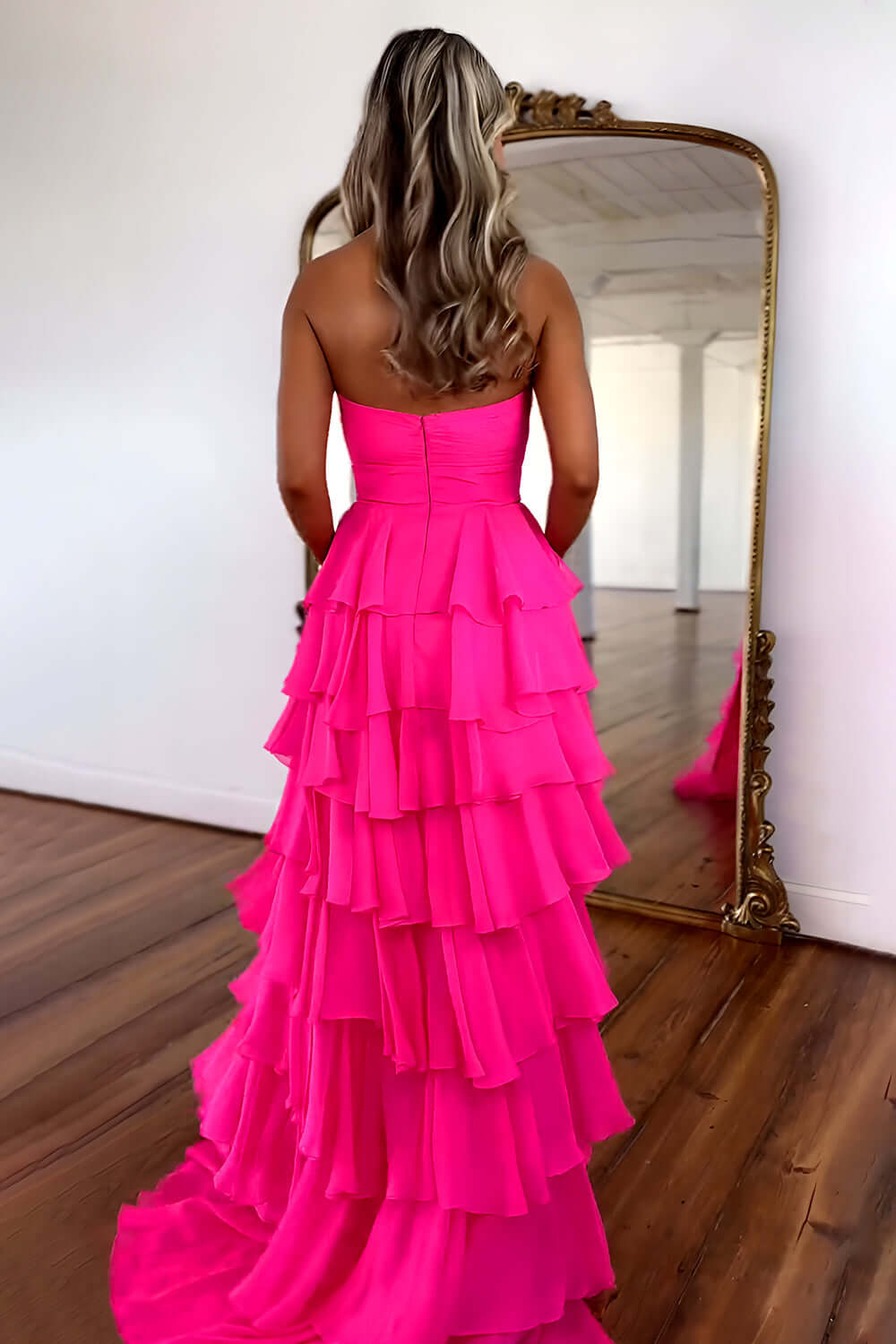 First, please measure your bust, waist, hips and height, and comparing your measurements with our size chart. Our sizes are accurate. Please choose according to your actual measurements. If the standard size doesn't fit, opt for a custom size. If you don't opt for custom sizing, choose a size larger than yours. You can get it tailored smaller after receiving. Please refer to the size chart on our official website for sizing. Avoid selecting based on your usual size, as this often leads to ill-fitting items. Always follow our provided sizing guidelines before purchasing.