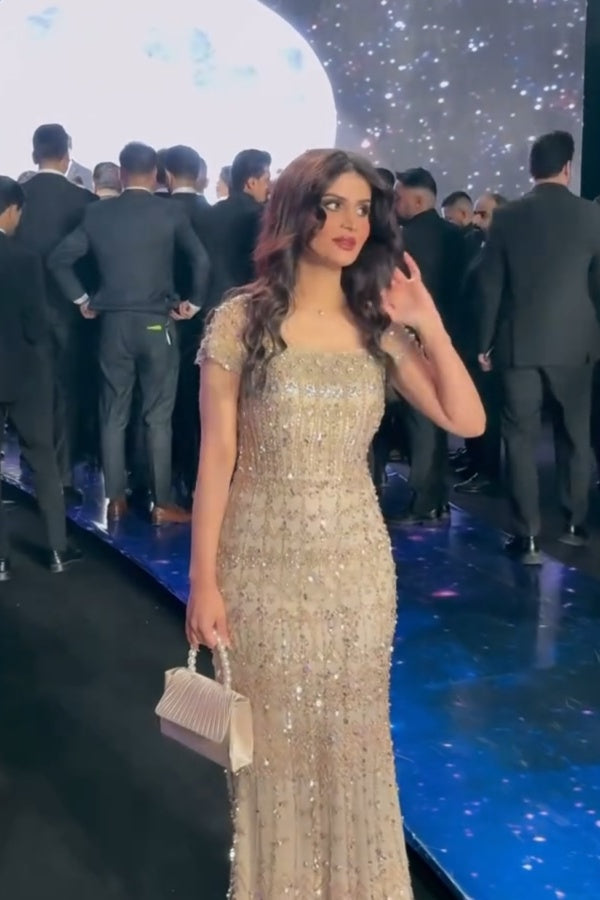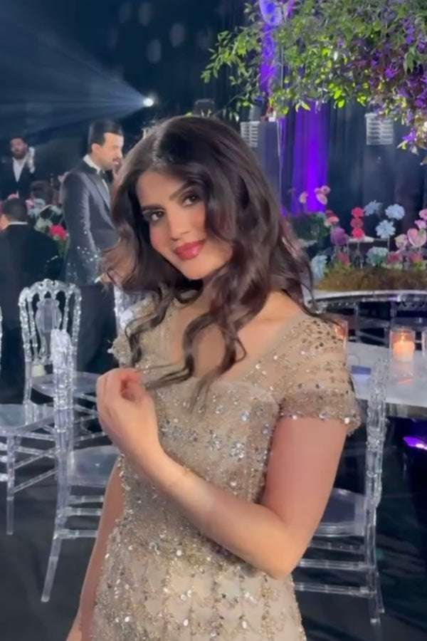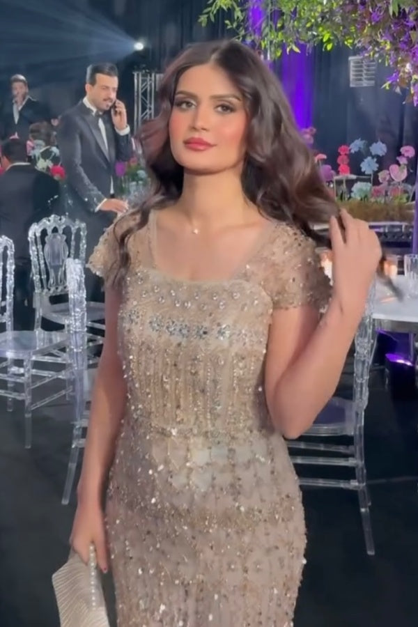 Crafted from delicate tulle adorned with intricate beadings and rhinestones, this dress features a luxuriously soft lining for effortless comfort. Designed to make a statement, it is the ultimate choice for prom nights, elegant evening soirees, wedding celebrations, and every special occasion in between. Step into it, and let your radiance take center stage at any event.