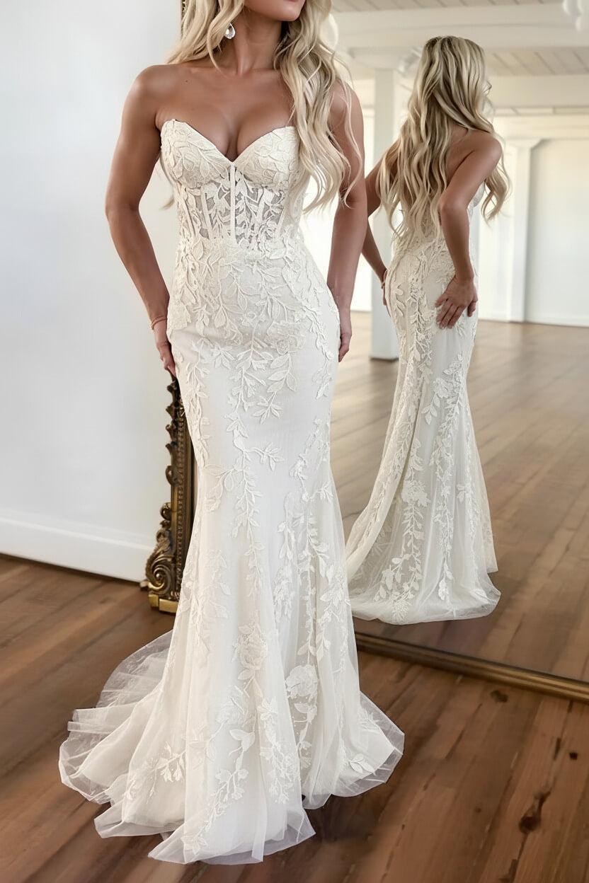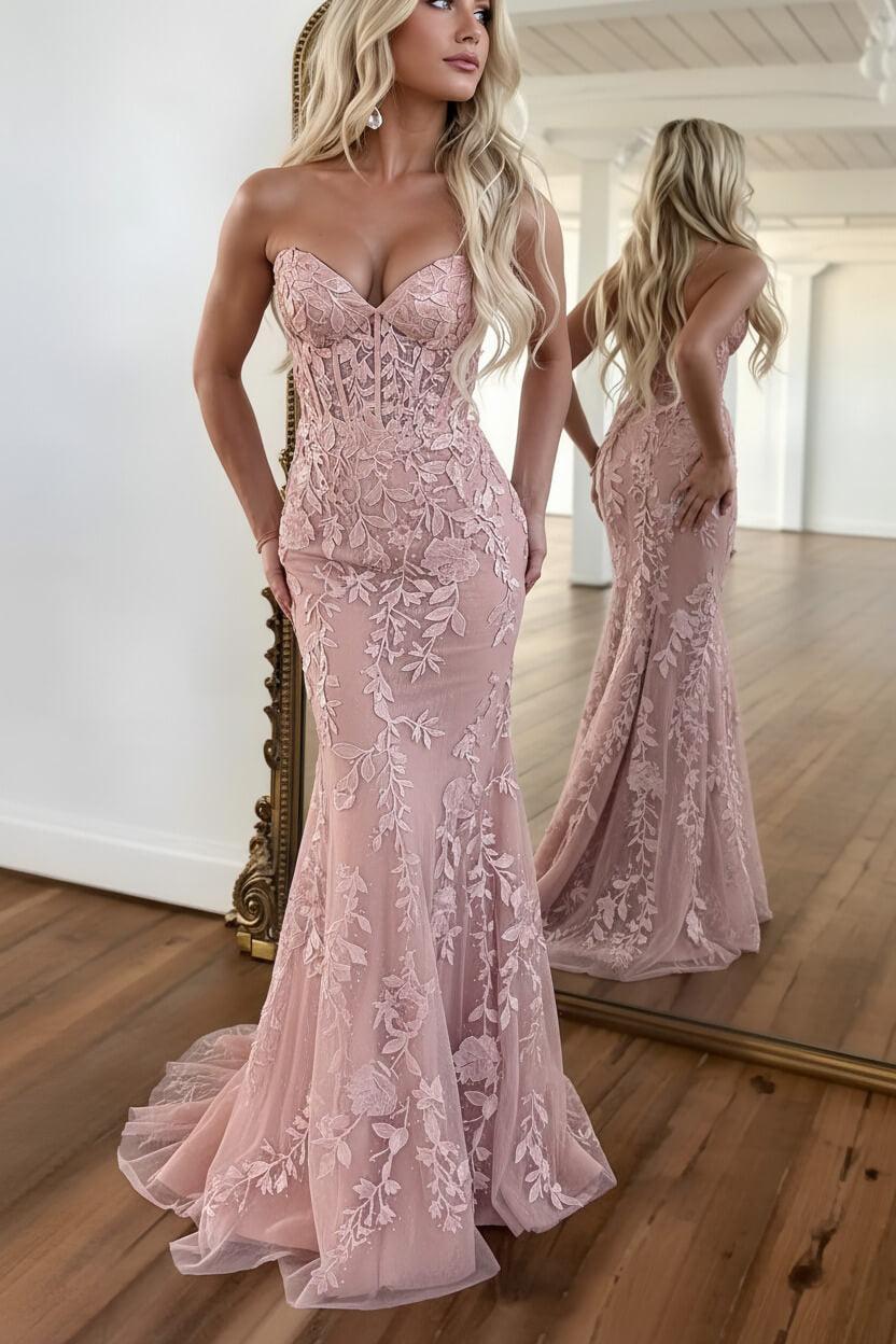 This stunning lilac mermaid lace dress is perfect for your next formal event. The strapless bodice features intricate floral lace detailing with a flattering, figure-hugging silhouette that flares out into a dramatic mermaid hem. Designed to make a statement, this elegant evening gown offers a blend of sophistication and allure, ensuring you are the center of attention. Ideal for proms, weddings, and gala evenings, this feminine lace dress combines timeless glamour with contemporary charm. Don't miss your chance to shine in this exquisite lilac lace mermaid dress.